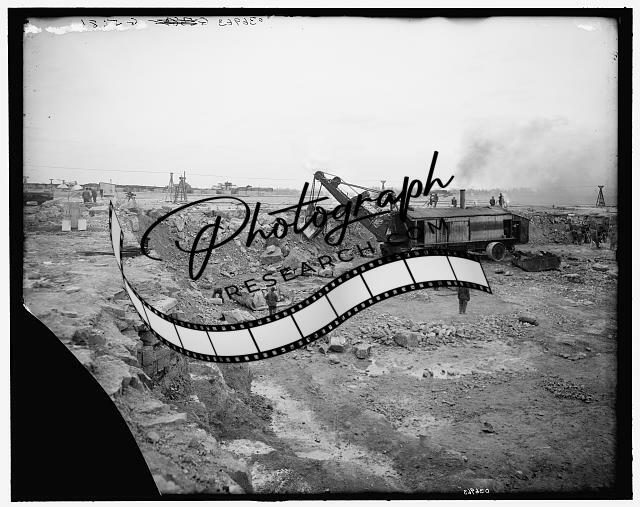Steam shovel,corner,excavated area,construction,Livingstone Channel,MI,1905