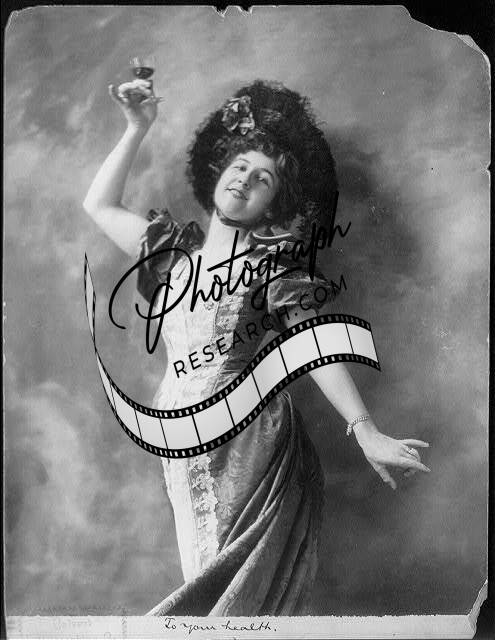 To your health,Young woman holding up glass,c1897,hat