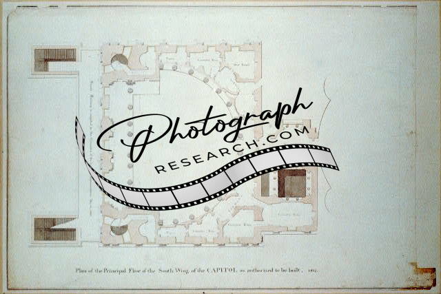 Inscriptions on recto: 'SOUTH ELEVATION of the CAPITOL of the U.S. as authorized to be built. from the design of B.H. Latrobe.' 'by F.C. de Krafft. 1818.'