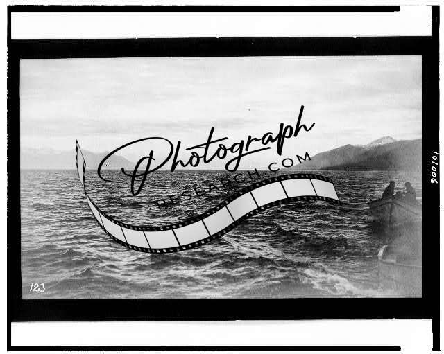 Devil's Thumb tipped,clouds,Frederick Sound,bays,mountains,ocean,Alaska,AK,c1887