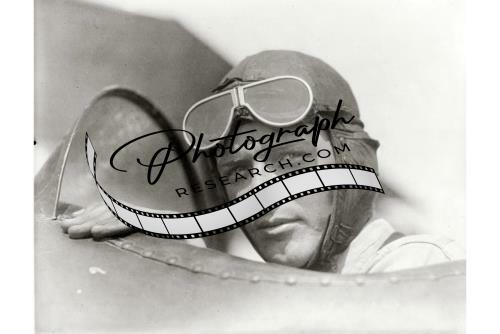 Charles Lindbergh wearing helmet,goggles,open cockpit,airplane,Lambert Field,MO