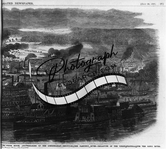 Steamboats,River,Union Commissariat Depot,White House Landing Burning,1862