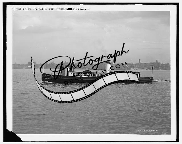US Marine Postal Service,cargo ship,mail,boats,Detroit River,returning,MI,c1911