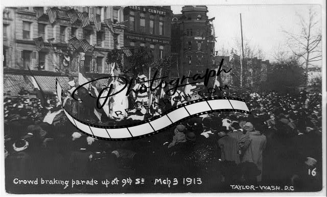 Crowd breaking parade up,Women's suffrage,demonstration,flags,Washington DC,1913
