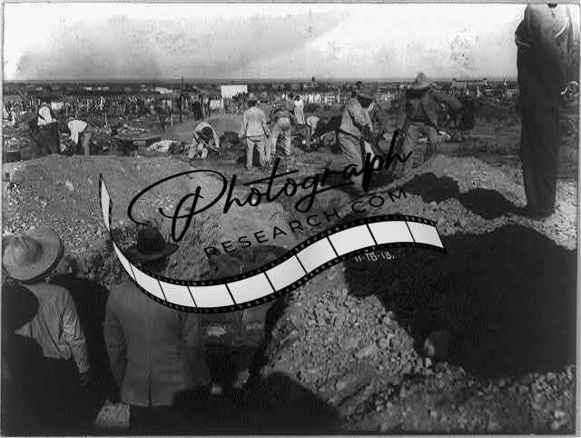 Filling the trench with dead Federals - Mexican Revolution,c1913,men