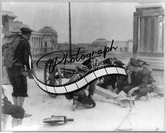 Title: [U.S. Navy in action at Vera Cruz, Mexico, 1914: riflemen and machinegunners guarding street]