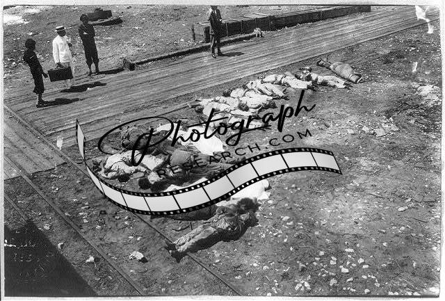 20 Dead Mexicans laid out by railroad tracks,US Navy,Vera Cruz,Mexico,1914