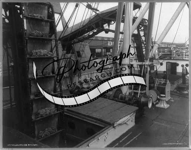 Unloading bananas,ship,conveyor,c1911,New Orleans,LA