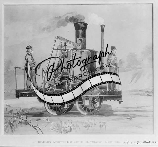 Locomotive ATLANTIC. B&O,1832. 'first to enter Wash.,D.C.' full broadside view