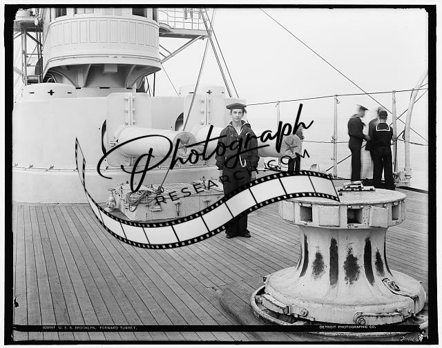 USS Brooklyn forward turret,American warships,cruisers,artillery,sailors,1896