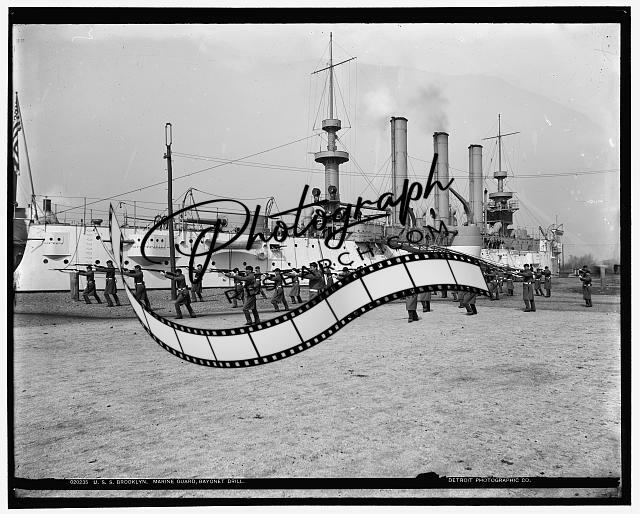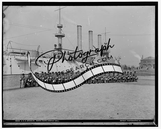 USS Brooklyn,Marine guard company drill,soldiers,cruisers,military training,1897
