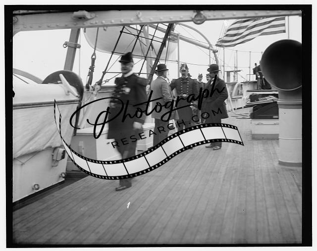 USS Chicago,Admiral Winfield Schley interviewing reporters,Military officer,1899