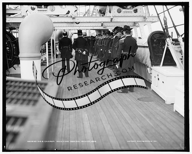USS Chicago,receiving,Admiral Winfield Schley coming,board,military officer,1899