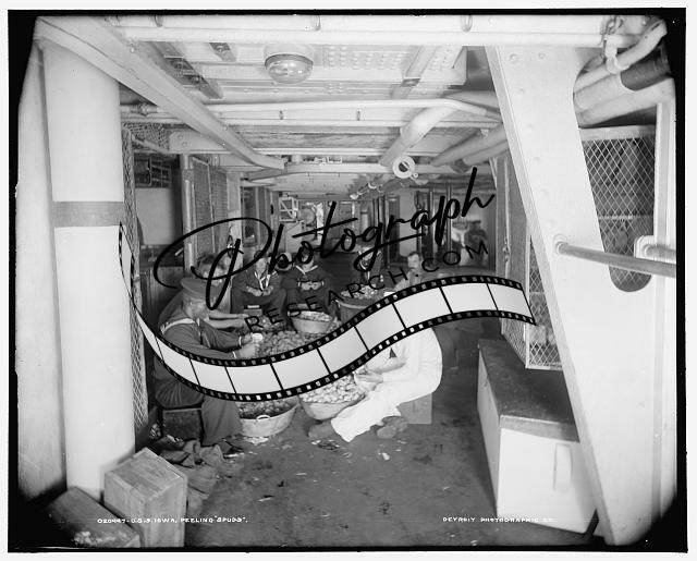 USS Iowa,peeling spuds,galley,sailors,ship kitchen,battleships,military,1897