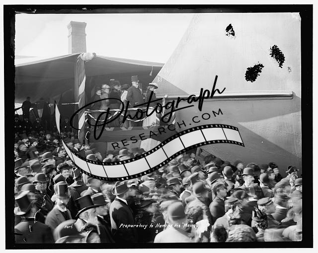 Preparatory,naming Maine,American battleships,launching,crowds,New York,NY,1889