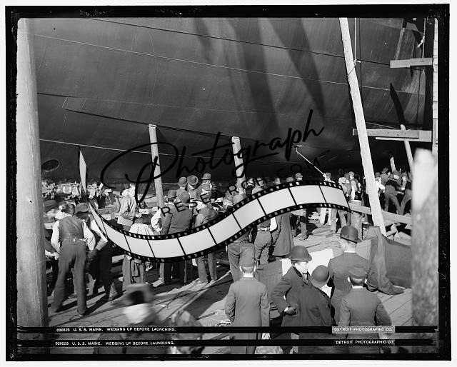 USS Maine,stream,launching,American battleships,NY,Detroit Publishing Co,1889