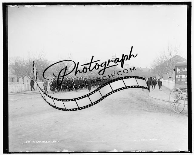 USS Maine,land drill,military training,soldiers,American battleships,street,1896 1