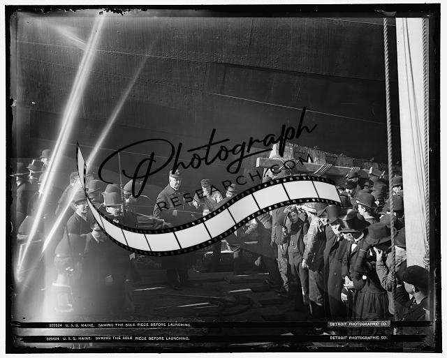 USS Maine,sawing sole piece before launching,crowds,battleships,New York,NY,1889