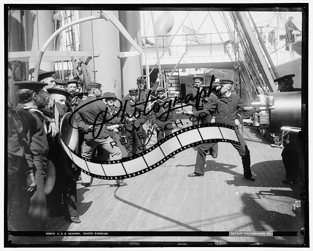 USS Newark,sword exercise,fencing,cruisers,warships,sailors,deck,US Navy,1891 1