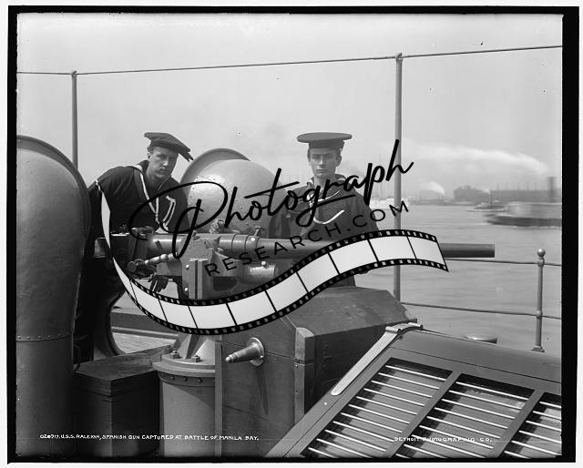 USS Raleigh,Spanish gun captured,Battle,Manila Bay,artillery,cruisers,boats,1899