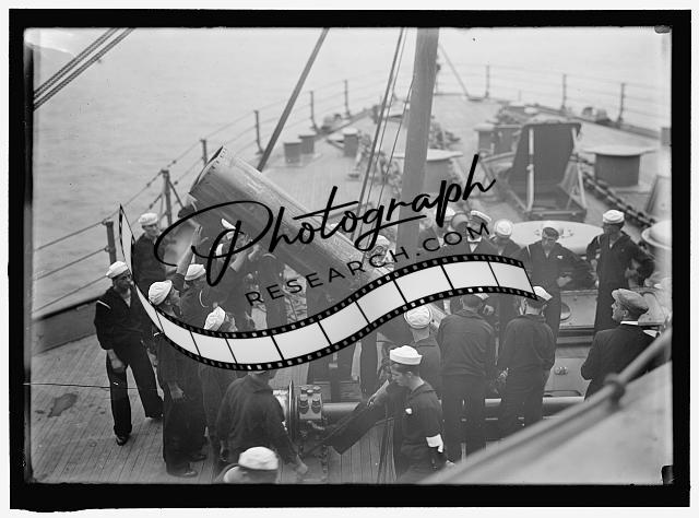 TARGET PRACTICE. U.S.S. WYOMING'S BOW,Ship,Naval,Sailors,1913,Harris & Ewing