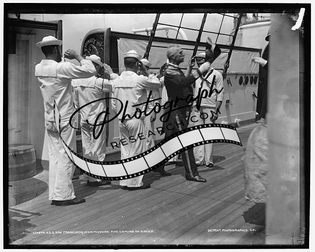 USS San Francisco,Commodore Fife leaving,deck,sailors,officers,deck,ships,1890
