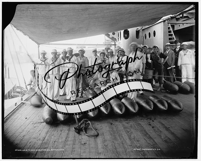 Second title on negative: Capt. Philip on bridge of Texas about 11 a.m., July 3, 1898, Colon and Oregon on starboard bow, Viscaya [i.e. Vizcaya] ashore, about abeam,
