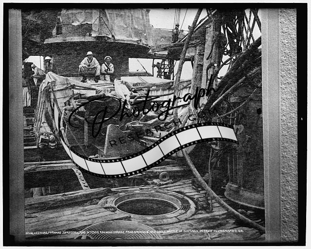 U.S.S. Texas,showing damage from Spanish 9-inch shell,Battle of Santiago,Cuba