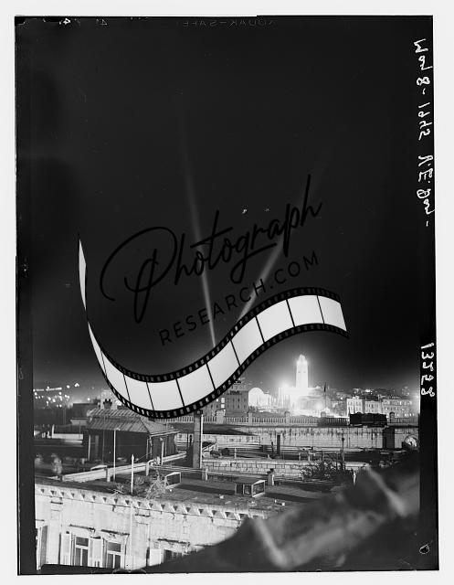 V.E. Day,May 8,1945,night illumination over King David Hotel & YMCA,Jerusalem