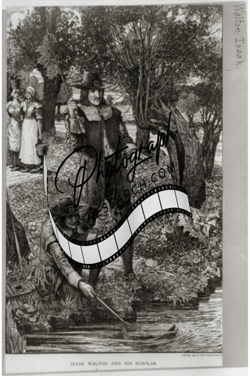 Izaak Walton,1593-1683,English writer,his scholar,man w/ fly rod,man nets trout