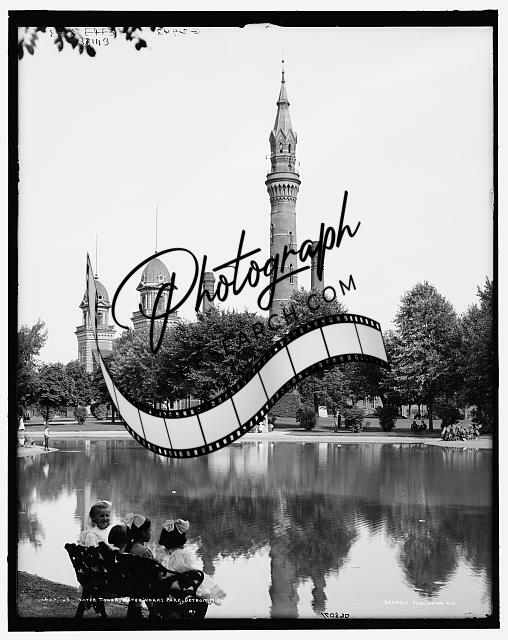 Water tower,Works Park,bodies,trees,Detroit,Michigan,Publishing Company,1900