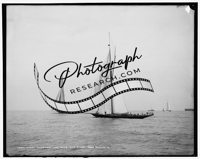 Start,American cup race,Vigilant,Valkryie II,yachts,regattas,boats,ships,c1893