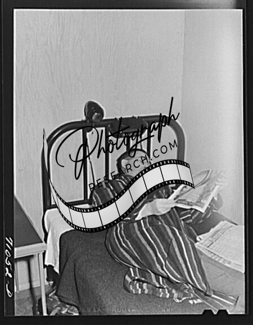 Title: Vallejo, California. Workman at Mare Island shipbuilding yards in his room at FSA (Farm Security Administration) dormitories