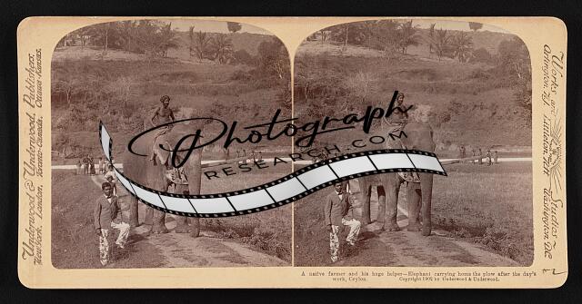 A native farmer and his huge helper--elephant carrying home the plow after the d