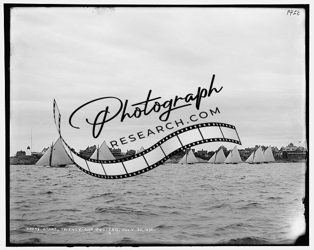 Start,twenty-one footers,regattas,yachts,boats,ships,water vessels,sailing,1892