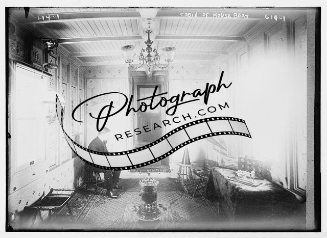 Sitting room of houseboat,man,Cabin