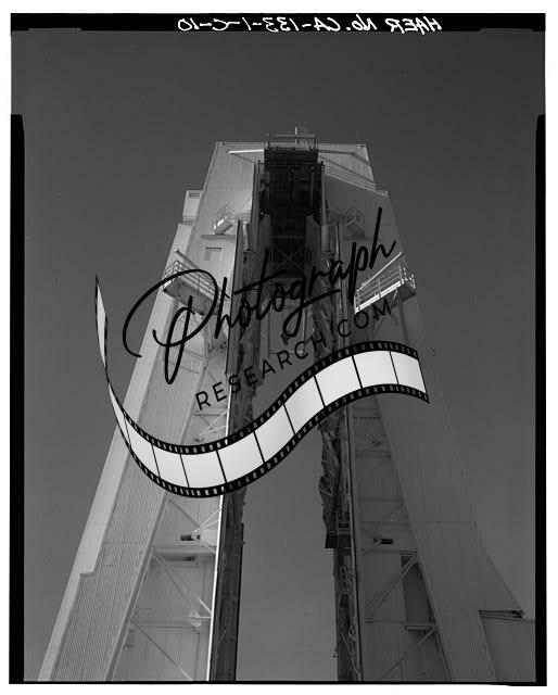 Title: 13. VIEW OF NORTH FACE OF MST AND FULLY ERECTED UMBILICAL MAST - Vandenberg Air Force Base, Space Launch Complex 3, Launch Pad 3 West, Napa & Alden Roads, Lompoc, Santa Barbara County, CA