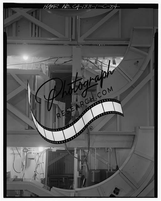 Title: 36. GENERAL VIEW OF SLC-3W MST STATION 85.5 FROM SOUTHEAST CORNER SHOWING REMOVABLE SAFETY RAILS AROUND CENTRAL OPENING, STRETCH SLING CYLINDER, AND PULLEY ON WEST SIDE, AIR-CONDITIONING DUCTING IN NORTHWEST CORNER, PLATFORM SEGMENTS AND HINGES - Vandenberg Air Force Base, Space Launch Complex 3, Launch Pad 3 West, Napa & Alden Roads, Lompoc, Santa Barbara County, CA