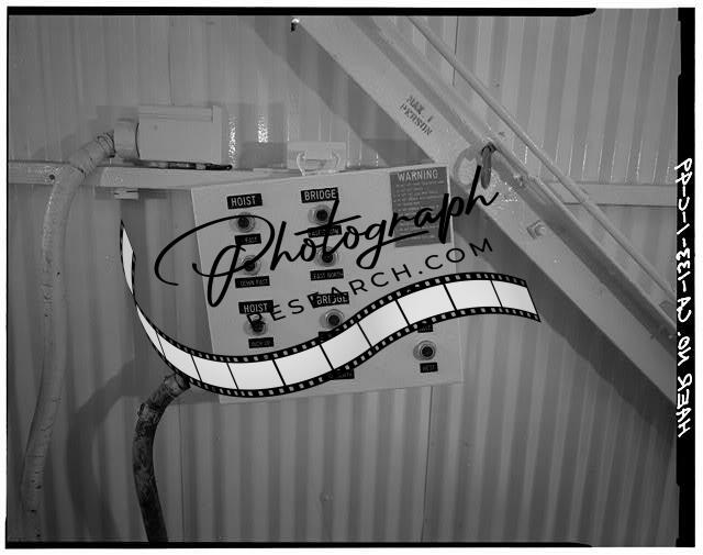 Title: 47. VIEW OF SLC-3W BRIDGE CRANE FROM NORTHEAST CORNER OF MST STATION 111. CORNER OF HALF-TON HOIST VISIBLE NEAR RIGHT MARGIN OF PHOTO. - Vandenberg Air Force Base, Space Launch Complex 3, Launch Pad 3 West, Napa & Alden Roads, Lompoc, Santa Barbara County, CA