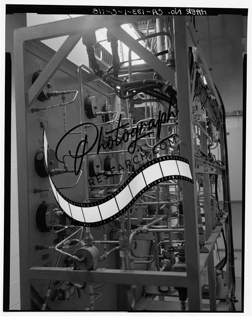 Title: 116. PNEUMATIC SUPPLY PANEL IN CENTER OF VEHICLE MECHANICAL SYSTEMS ROOM (111) OF LSB (BLDG. 770), FACING NORTH. CONTROLS FOR FLOW AND PRESSURE REGULATION OF NITROGEN ON RIGHT SIDE OF PANEL; CONTROLS FOR HELIUM ON LEFT SIDE OF PANEL (AT LEFT EDGE OF PHOTO). - Vandenberg Air Force Base, Space Launch Complex 3, Launch Pad 3 West, Napa & Alden Roads, Lompoc, Santa Barbara County, CA