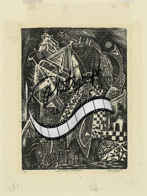 Abandoned waterfront,Monochromatic work,wood s,Howard B Schleeter,1947