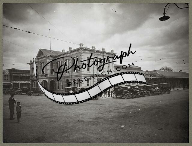 City market Cafe,Laredo,Webb Co.,TX,cars parked,c1925,Model T