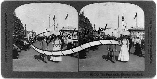 The Promenade,Brighton,England,c1909,man,walking cane,woman,umbrella,walking
