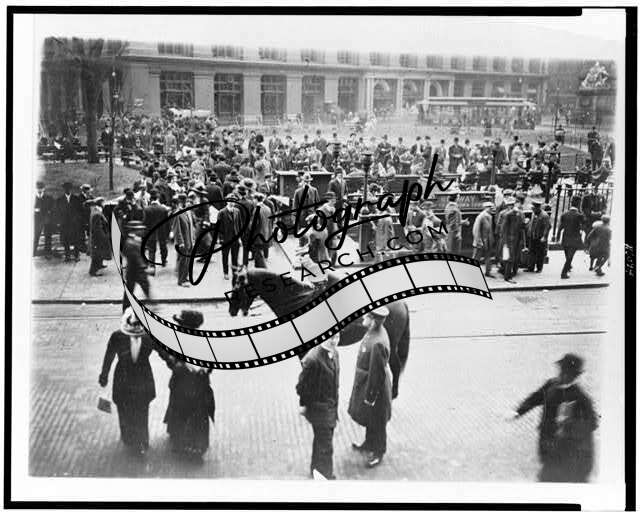 Crowd,White Star Liner Office,New York,latest news of sinking ship,Titanic,1912