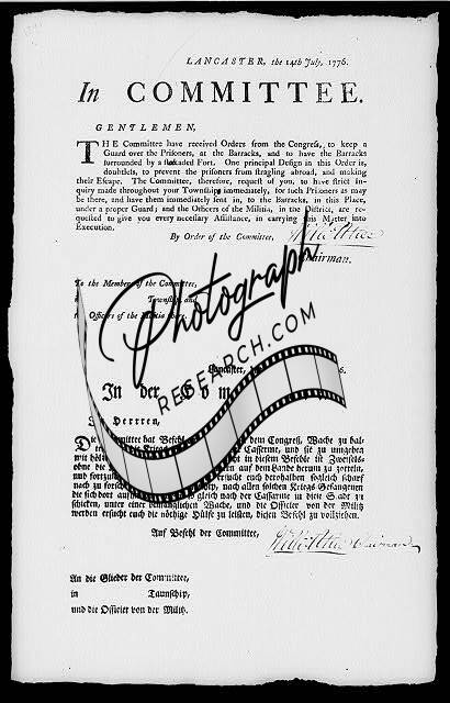 Instructions for keeping prisoners,Lancaster,PA,1776