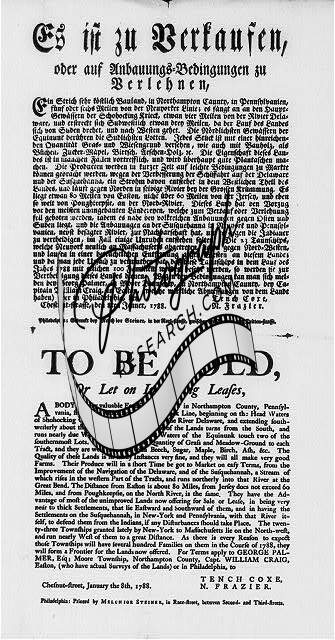 Notice for sale/lease,Northampton County,PA,1788