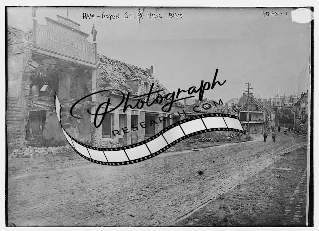 Ham - Noyon Street & Nide Boulevard,Somme,France,damaged buildings,rubble,Bain