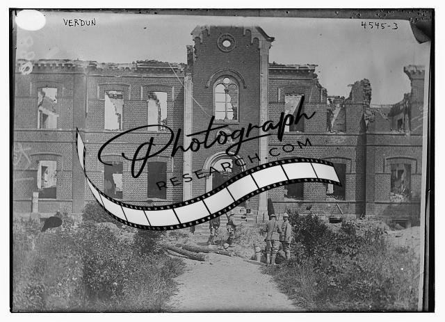 Verdun,Meuse,Lorraine,France,damaged building,rubble,Bain News Service,soldiers