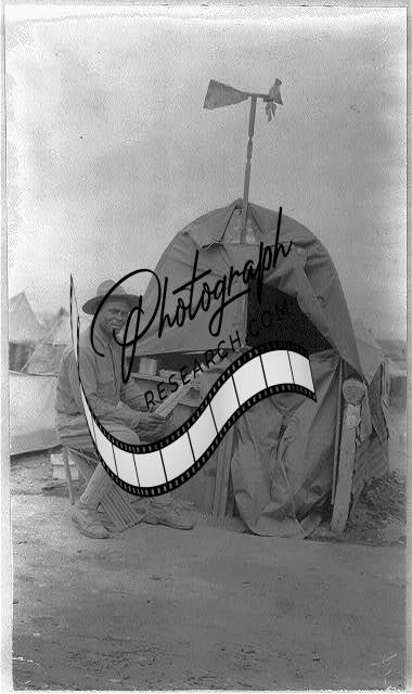 24th Infantry Regiment,Negro in Mexico,1916: man reading paper by his tent shack