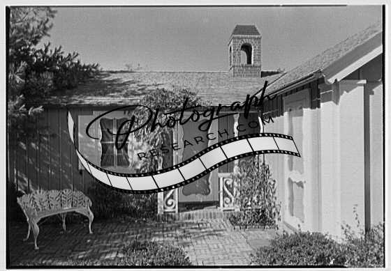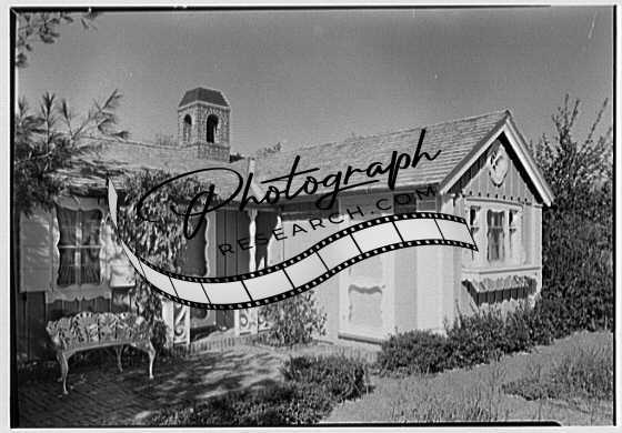 Title: Vernon H. Brown, residence in Eldred, Pennsylvania. Playhouse, entrance exterior, with fence